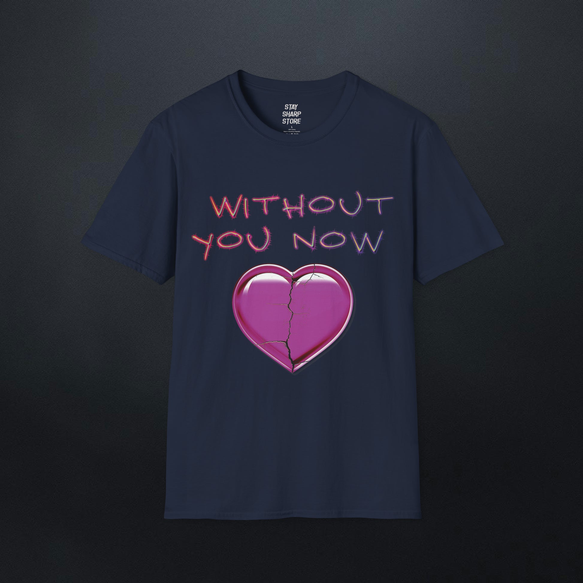 The 'Without You Now' unisex soft-style t-shirt puts a comfort to a broken heart. Made from very soft materials, this tee is 100% cotton, The shoulders have twill tape for improved durability. There are no side seams. The collar is made with ribbed knitting to prevent curling damage.